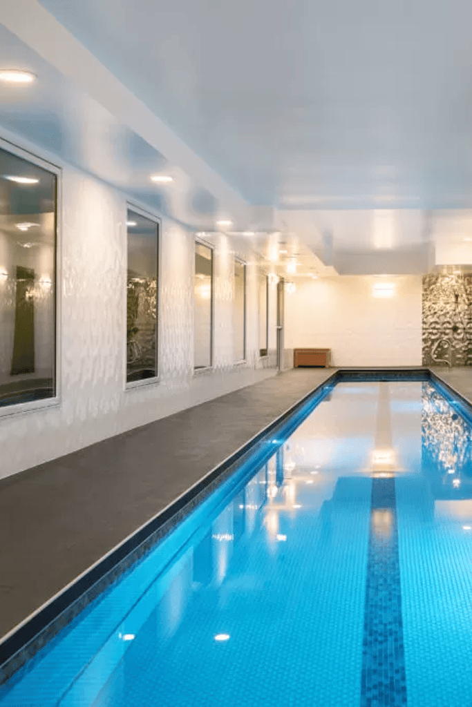 The indoor pool sits deeper in the plan, folded into the life of the house rather than set apart. Water always changes a space, it shifts the air, reflects the light, softens sound. You know the technical side of this: structure, humidity, mechanical systems. But what’s remarkable here is how those heavy requirements disappear into the architecture, leaving only calm.